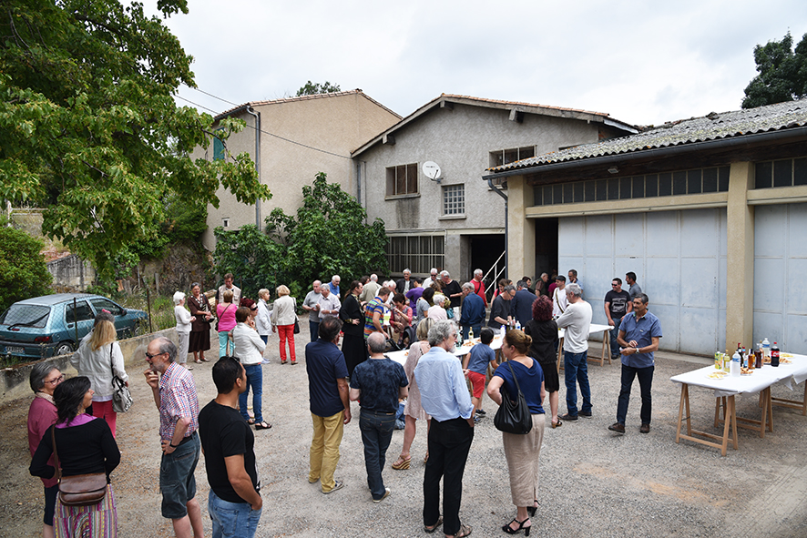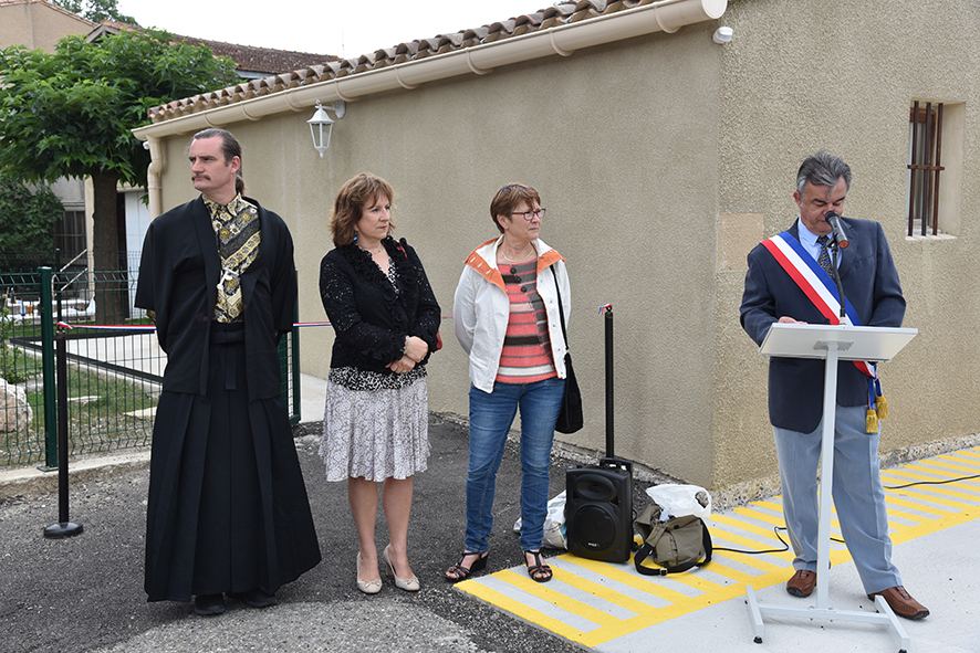 Inauguration du dojo par Bernard Lauret, maire de Montolieu, de la présidente de Budobi, Jocelyne Paré, de quelques ensei-gnants d’Aïkido de l’Aude et de la population. Et comme toute manifestation qui se respecte à Montolieu, cela se termine naturellement par un vin d’honneur.